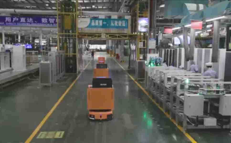 为车载冰箱物流配送打造的智能解决方案,,,包含产中物流通过潜伏举升AMR搬运至线边,,,产后成品物流智能仓储,,,流程包含产中物流智能齐套入库,,线边安灯叫料AMR智能配送至线边,,,,成品入库、、出库,,,,通过无人堆高车机器人,,,,智能仓储管理替代人工作业管理,,实现更高存储、、、更高效率、、更具柔性化的解决方案。。